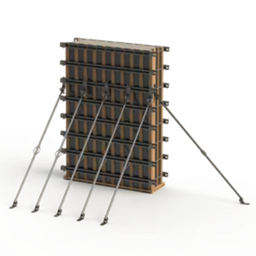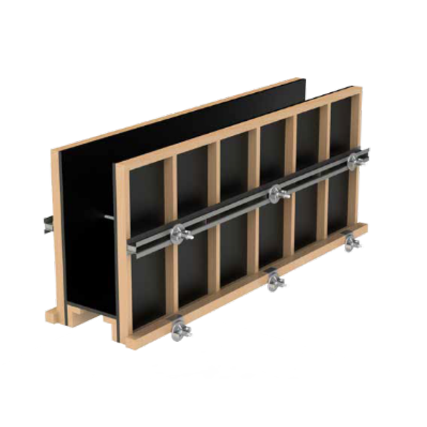 Amplamente utilizado para imobilizar vigas, pilares e formas, oferecendo uma alternativa eficiente para reduzir o uso de madeira. O sistema emprega uma combinação de tirantes (também conhecidos como barras de ancoragem ou agulhas) e cantoneiras de fixação (presilhas) para o fundo das vigas, juntamente com aprumadores. Uma vez travados, esses componentes permitem um perfeito alinhamento e fechamento das formas, garantindo que o concreto seja despejado sem vazamentos.